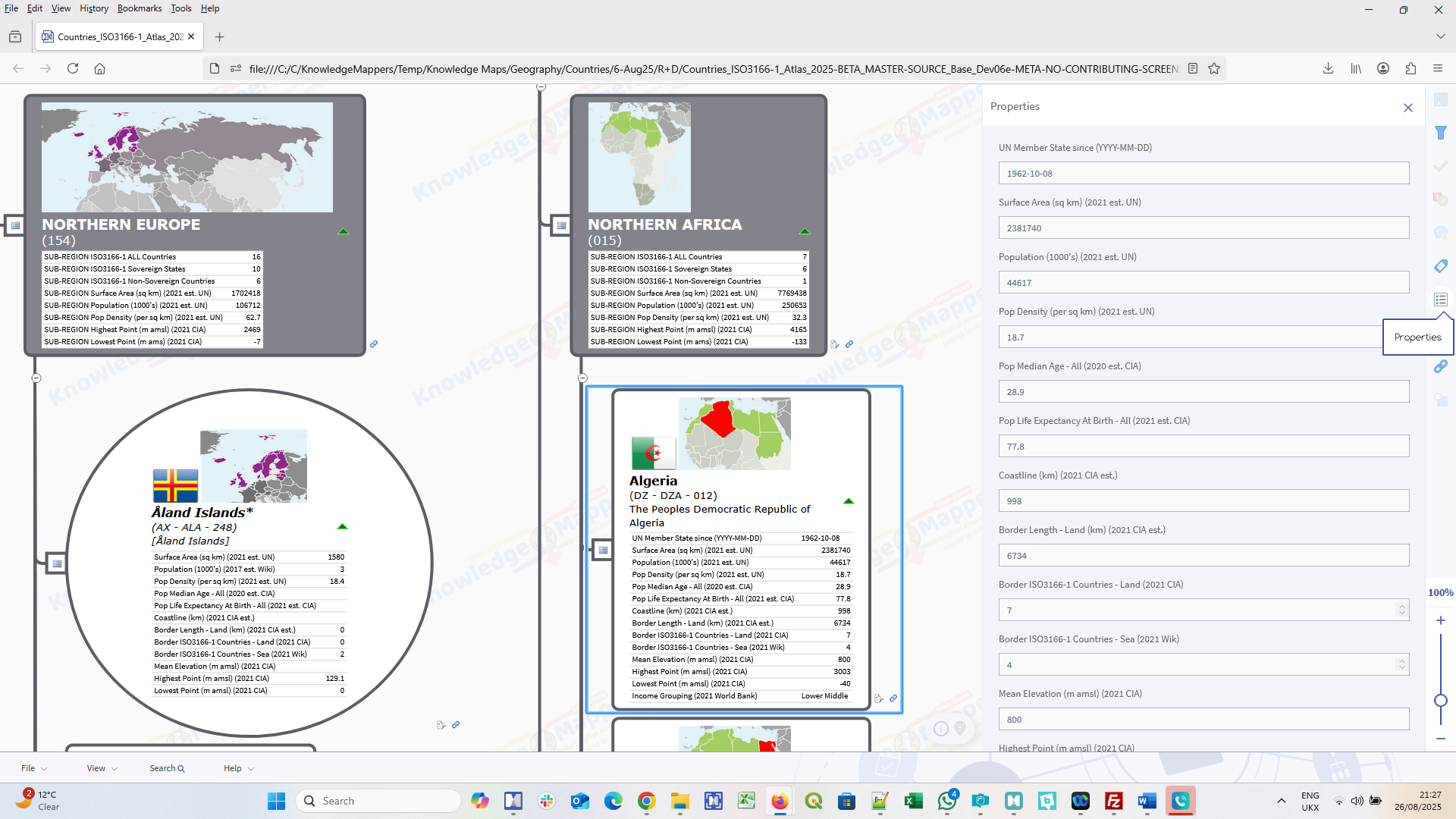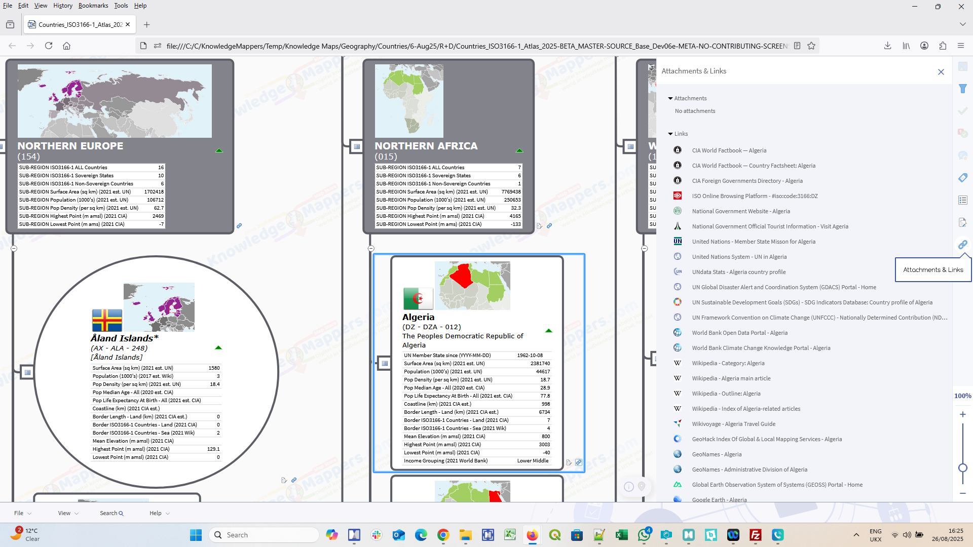 Combined together in one map, they provide a rich ‘base level’ of contextual knowledge & knowledge resource links about every country of the world, and the ‘bigger picture’ of the macro-geographic region & sub-region of which they are part, providing the solid foundation for all ‘countries of the world atlas knowledge maps’ we create.