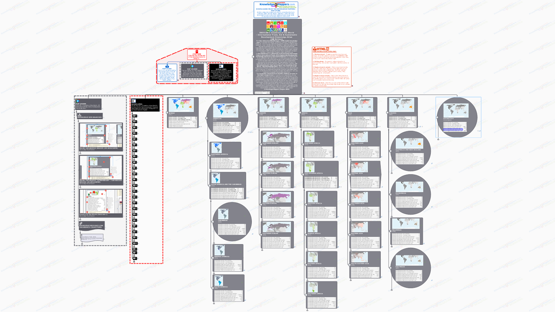 Clicking on any of the alphabetically arranged sub-branches in the QUICK LINKS branch will instantly ‘take you’ to the Region, Intermediary / Sub-Region or Country knowledge seed branch in the main body of the map….