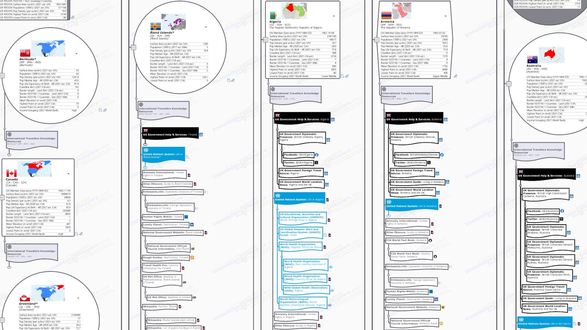 iii) Use in conjunction with General & Geographic Knowledge Resources – Specialised resource collections like this should be used in conjunction with those in the General & Geographic link collections, some (~30) of which are attached to the ISO3166-1 Country seed branch. The full range of links in these collections are to be found in the latest Countries of the World – General & Geographic Knowledge Atlas.