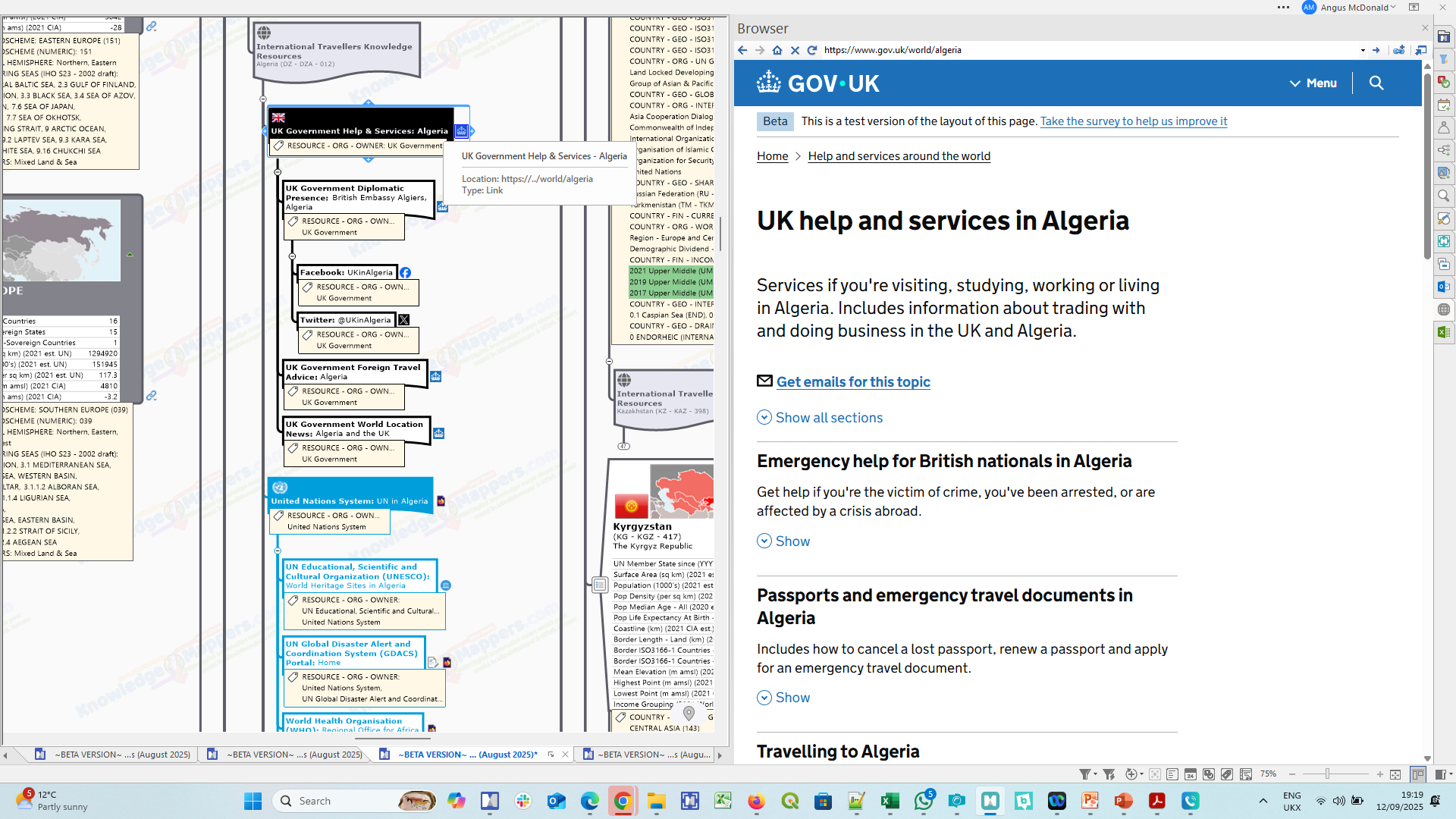 In this GB Edition the collections of sub-branches with single links to International Travellers knowledge resources of the General Edition are supplemented by an additional collection of ~1,900 resources specifically produced by the UK Government for the benefit of UK nationals travelling abroad, be it for business or pleasure. Both collections are ‘built out on top of’ our Countries of the World – Base Knowledge Atlas, with it’s rich visual knowledge framework of Region and Country seed branches, each with their own rich visual mix of contextual knowledge elements embedded within them, or attached to them (including multiple hyperlinks to ~30 core general & geographic knowledge resources).